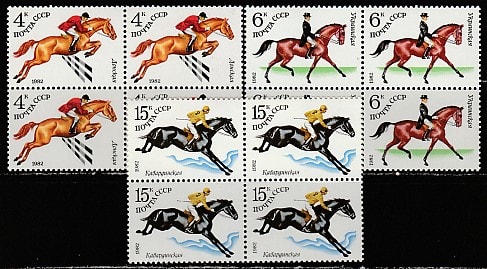 СССР 1982 год. Коневодство. Конный спорт, 3 квартблока