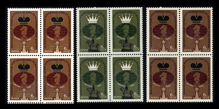 СССР 1982 год. РАЗНОВИДНОСТЬ Межсезонные турниры чемпионатов мира по шахматам, 3 квартблока на белой бумаге