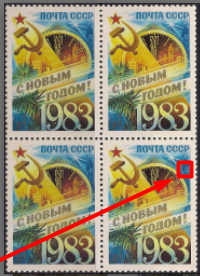 СССР 1982 год. С Новым 1983-м годом! Квартблок. Разновидность - красная точка у края справа