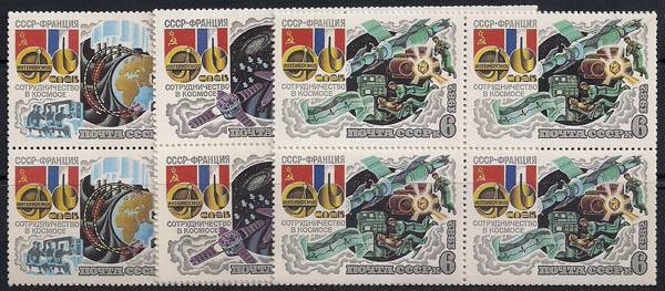 СССР 1982 год. Советско-французский космический полёт на корабле "Союз-Т-6". (5240-42). 3 квартблока (Ю)