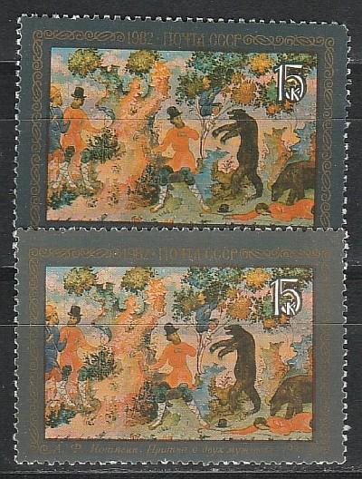 СССР 1982 г, Художественные Промыслы Мстеры, ном. 15 к., Разный Цвет, 2 марки. (Ю)