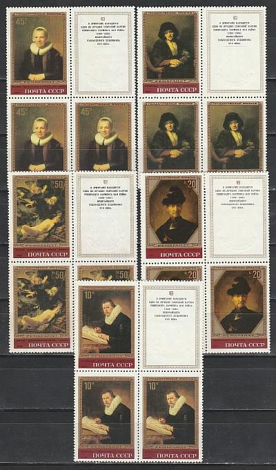 СССР 1983 г, Эрмитаж, Рембрандт, 5 квартблоков с купонами