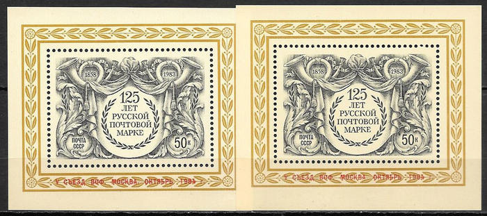 СССР 1983 год. 125 лет русской почтовой марке. Разновидность - не пропечатана надпечатка