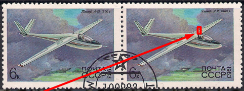 СССР 1983 год. Планер А-15 (ном. 6к). Разновидность - пятно на крыле
