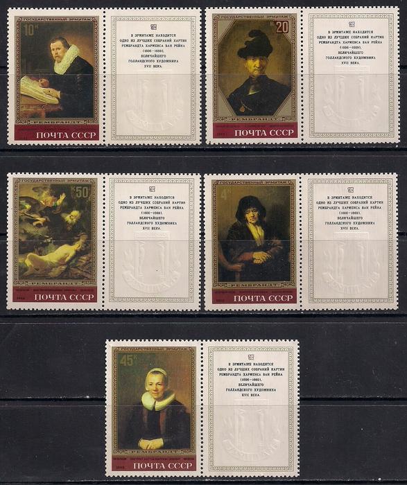 СССР 1983 год. Полотна художника Рембрандта Харменса ван Рейна. 5 марок с правым расположением купона