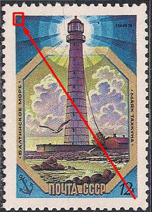 СССР 1983 год. Тахкуна-маяк (ном. 12к). Разновидность - красное пятно у рамки
