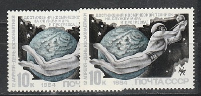 Левая марка на более белой бумаге