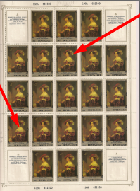 СССР 1984 год. Д. Хейтер "Портрет Е.К. Воронцовой" (ном 4к). Лист. Разновидность - точка над "ж" + зелёная точка на платье