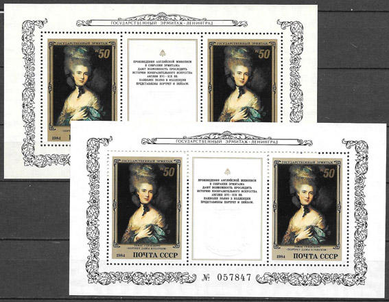СССР 1985 год. Английская живопись. Разновидность - белая и серая бумага