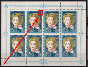 СССР 1985 год. Девушка на фоне радуги (ном. 5к). Малый лист. Разновидность - белое пятно на "д" в "молодёжи"