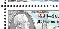 СССР 1986 год. Дрейф во льдах Антарктики. Разновидность - в 4 марке точка над датой, листСССР 1986 год. Дрейф во льдах Антарктики. Разновидность - в 4 марке точка над датой, лист