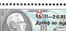 СССР 1986 год. Дрейф во льдах Антарктики. Разновидность - в 4 марке точка над датой, лист