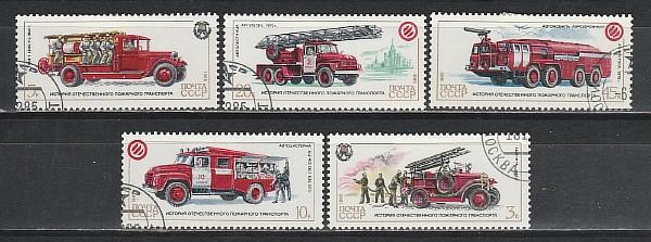 СССР 1985 год, История Пожарного Транспорта, 5 гашеных марок