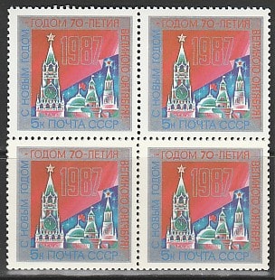 СССР 1986 год. С Новым, 1987 годом! квартблок (5716)