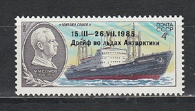 СССР 1986 год, Судно "Михаил Сомов", Надпечатка, 1 марка.