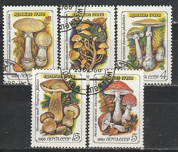 СССР 1986 год, Ядовитые Грибы, 5 гашеных марок