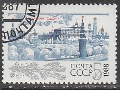 СССР 1987 год. С Новым, 1988 годом! 1 марка, № 5829 (гашёная)