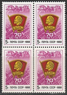 СССР 1988 год. 70 лет ВЛКСМ, квартблок (5904)