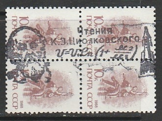 СССР 1988 год. Стандарт (ном. 10 к.) НДП: "Чтения К.Э. Циолковского", квартблок.