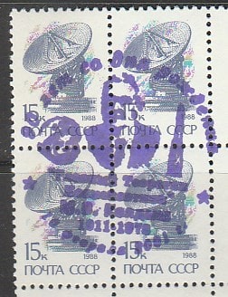 СССР 1988 год. Стандарт (ном. 15 к.) СГ: 90 лет со дня рождения теоретика космонавтики М.В. Келдыша, 10.02.2001 год, квартблок (синяя)