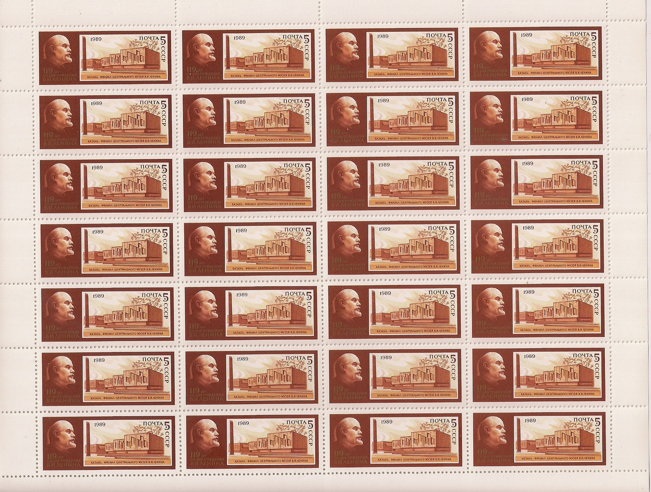 СССР 1989 год. 119 лет со дня рождения В.И. Ленина. Музей В.И. Ленина во Фрунзе, Казани и Куйбышеве. 3 листа