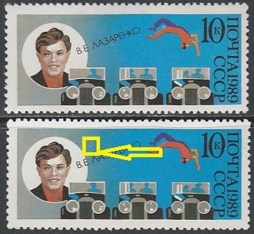 СССР 1989 год. 70 лет советскому цирку, разновидность, брак печати