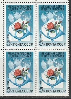 СССР 1989 год. Международная неделя письма, квартблок (6030)