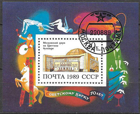СССР 1989 год. Московский цирк на Цветном бульваре. 1 гашеный блок.