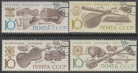 СССР 1989 год. Музыкальные инструменты народов СССР, 4 марки, № 6046-49 (гашёные)
