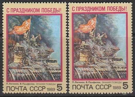 СССР 1989 год. С праздником Победы! Разновидность - разный оттенок, 2 марки.
