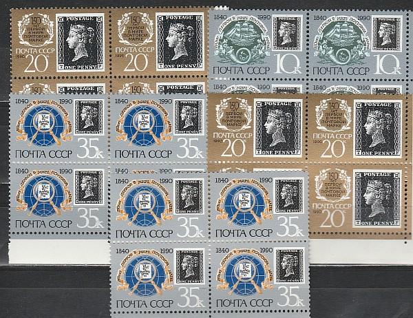 СССР 1990 г, 150 лет Первой Марке, 5 квартблоков