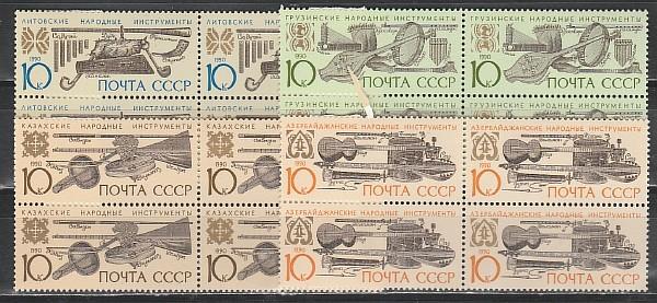 СССР 1990 г, Музыкальные Инструменты, 4 квартблока
