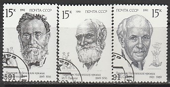 СССР 1991 год. Лауреаты Нобелевской премии, 3 марки, № 6253-55 (гашёные)