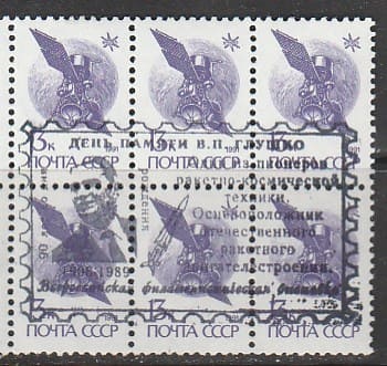 СССР 1991 год. Стандарт (ном. 13 к.). НДП: "Всероссийская филвыставка. День памяти В.П. Глушко. Один из пионеров ракетно-космической техники", 6 марок.