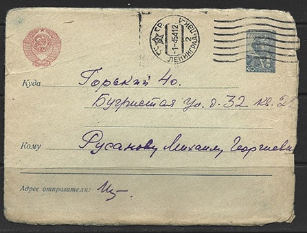 Стандартный конверт прошел почту 1954 год, марка № 1386 40 копеек