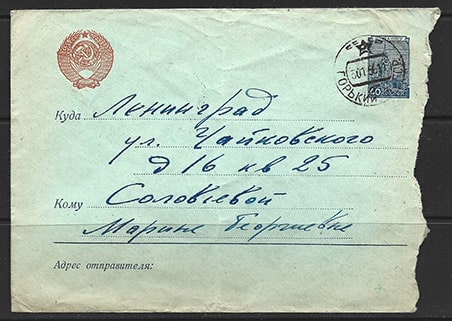 Стандартный конверт прошел почту 1956 год, марка 40 копеек