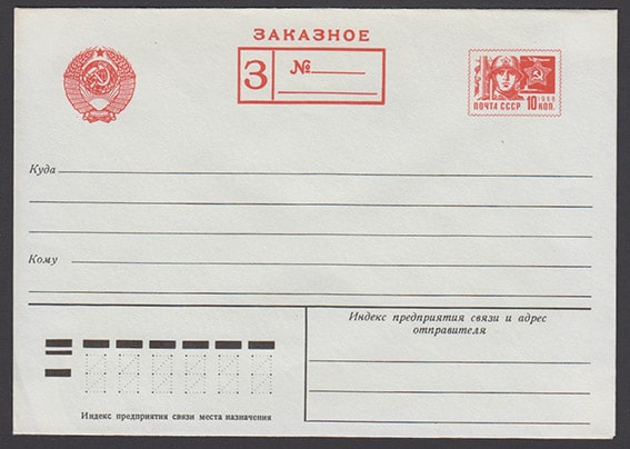Стандартный конверт. Заказное, 10 копеек, 1974 год