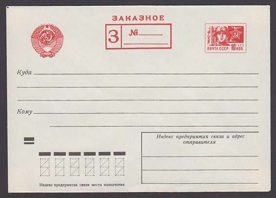 Стандартный конверт Заказное, 1974 год. Марка ном. 10 коп. № 1.228