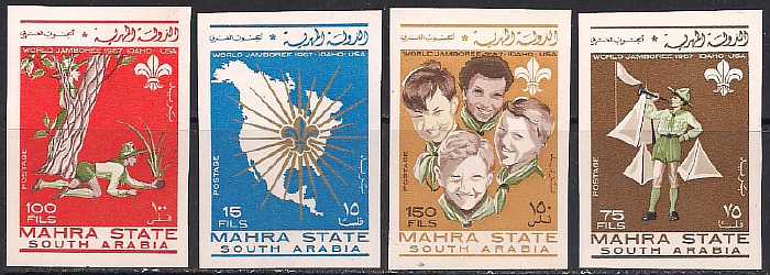 Султанат Махра (Йемен) 1967 год. Движение скаутов. 4 марки без зубцов