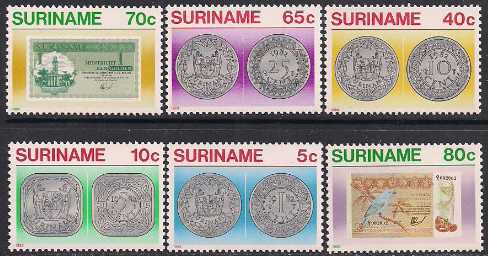 Суринам 1983 год. Монеты и банкноты. 6 марок