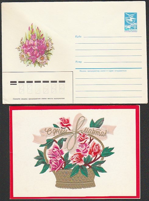 Сувенирный комплект. ХМК с двойной открыткой. С днём 8 Марта! 1984 год.