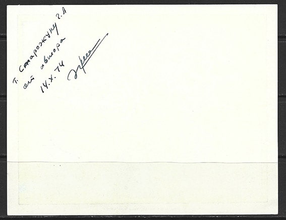 Сувенирный лист с автографом автора. 30-летие освобождения Украинской ССРот фашистских захватчиков, 1974 год