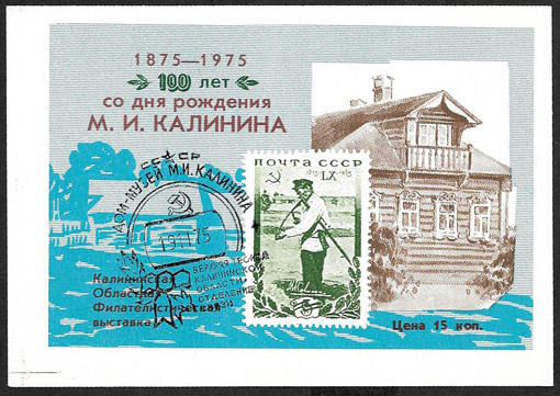 Сувенирный листок. 100 лет со дня рождения М.И. Калинина со СГ, 1975 г.