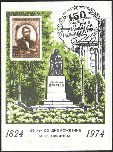 Сувенирный листок. 150 лет со дня Рождения И.С. Никитина. Воронеж 1974 г. Со СГ