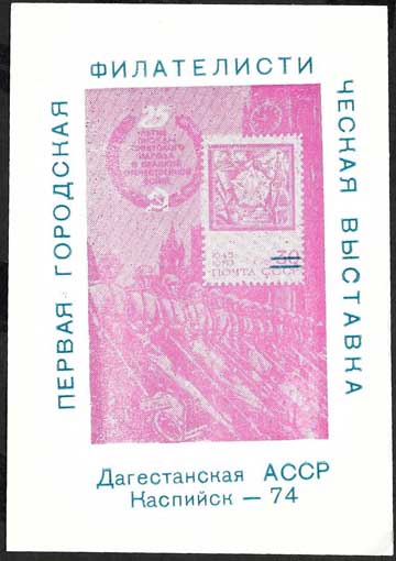 Сувенирный листок. 25 лет Победы Советского народа в Великой Отечественной Войне. Каспийск 1974 год.Фиолетовый цвет.
