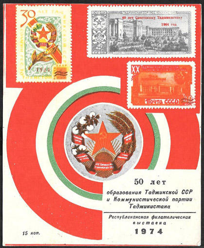 Сувенирный листок. 50 лет образования Таджикской ССР и Компартии. 1974 г.