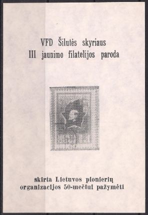 Сувенирный листок. 50 лет пионерской организации. 3-я районная филвыставка, Литва, Шилуте, 1973 год