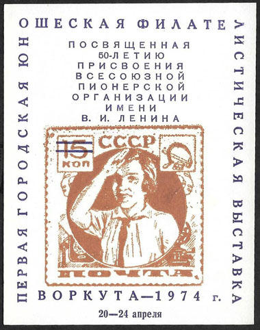 Сувенирный листок. 50 лет присвоения Всесоюзной пионерской организации им. В.И. Ленина. Воркута 20,-24,04,1974 год