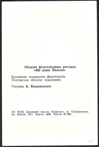 Сувенирный листок. 80 лет Полтаве. Филвыставка Симферополь 1974 г.