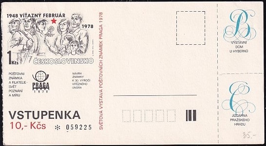 Сувенирный листок. Билет на Филвыставку Прага "Победный февраль" Прага, 1978 год